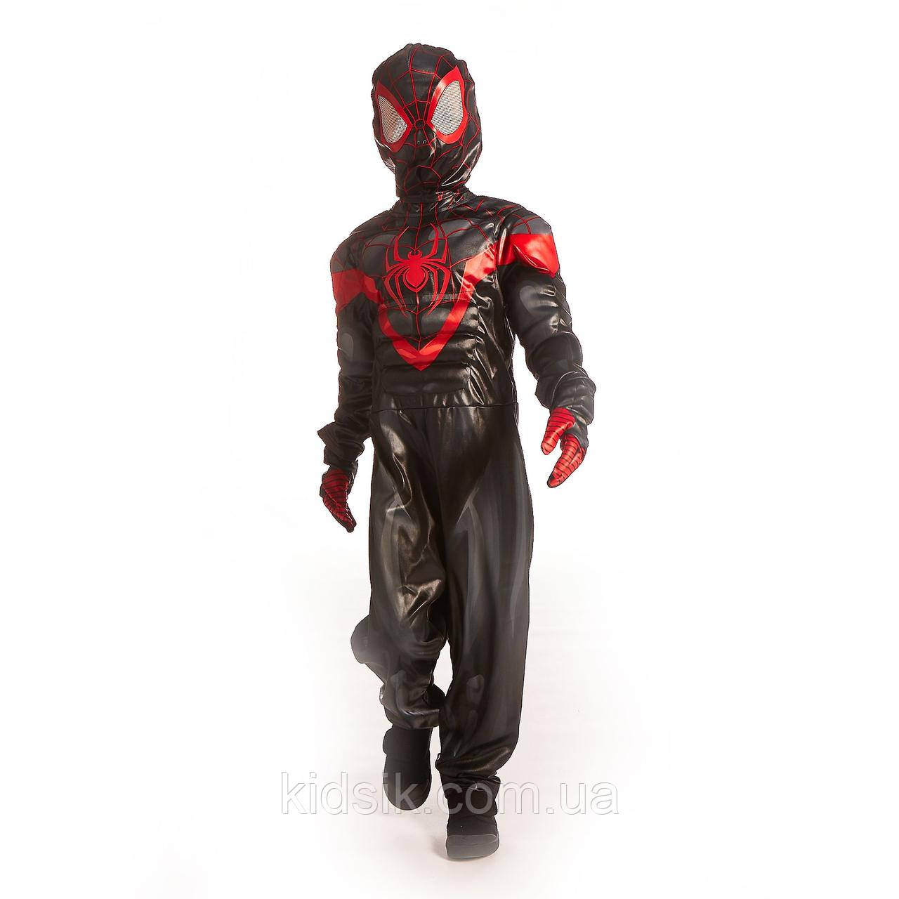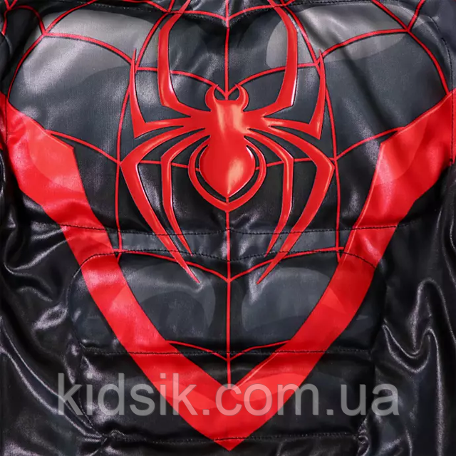 Стильні супергерої вступають в бій в цьому високотехнологічному ансамблі костюмів Людини-павука з м'язистим боді з перетинчастим принтом, капюшоном та рукавицями зі звуковими ефектами в стилі новачка Майлза Моралеса, зірки фільму « Людина-павук: через всесвіти» .