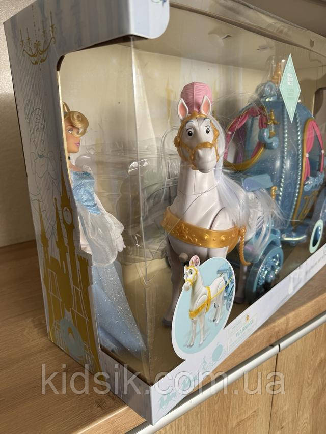 Вони будуть грати довго і щасливо, втілюючи в життя казку Діснея з цим подарунковим набором класу люкс «Попелюшка». Попелюшка в блискучому бальному платті стильно подорожує у своїй світиться гарбузовій кареті, яку тягне білий кінь, яка насправді ходить пішки.
