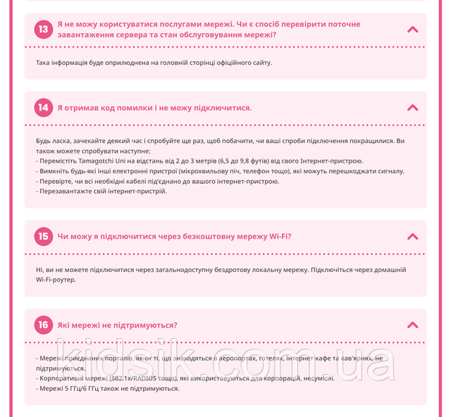 Пристрої Tamagotchi Uni вперше можна оновлювати через Wi-Fi! Завантажте предмети та нові зони Tamaverse! Використовуйте Wi-Fi, щоб завантажити ексклюзивний предмет, знайдений усередині пакетів! |