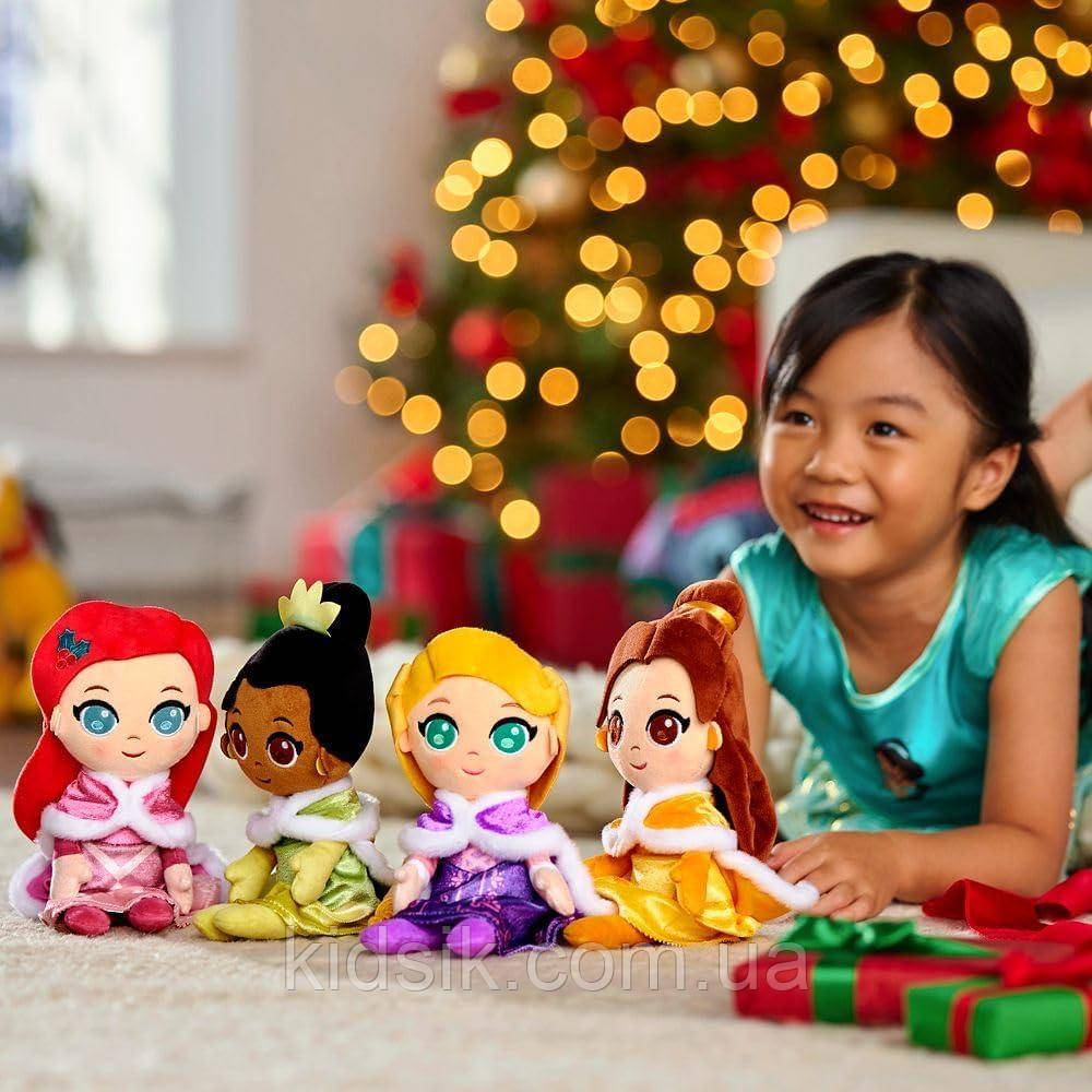 Одного разу взимку чотири чарівні принцеси Діснея зібралися разом, щоб відсвяткувати святковий сезон. Різдвяні мрії та бажання здійснюються з цим набором м'яких плюшевих ляльок у мерехтливих платтях і хутряних накидках. До комплекту входять Аріель, Тіана, Рапунцель і Белль, кожна з яких з подарунком у формі обійми спеціально для вас!