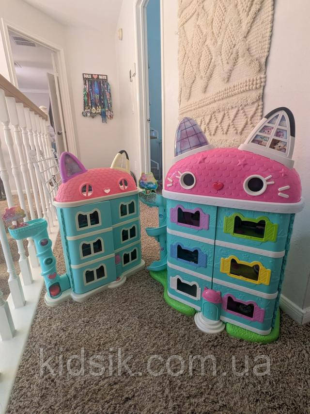 🎬 Магія фільму Gabby: Інтерактивний ляльковий будиночок Gabby заввишки понад 60 см, з 7 інтерактивними кімнатами, анімованими LCD-очима, працюючим «Кото-ліфтом» та спіральною гіркою для доставок.